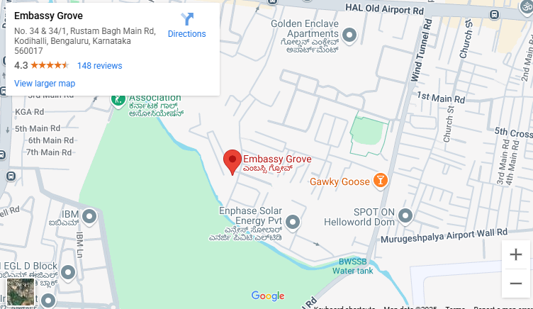 The Embassy Boulevard location is at Rustam Bagh Main Road Kodihalli, Bangalore